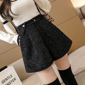 毛呢短裤女秋冬新款加厚松紧高腰百搭宽松显瘦外穿阔腿...