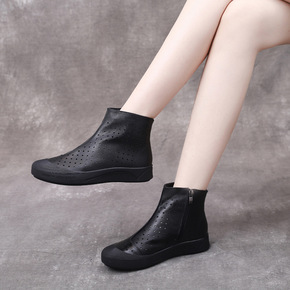 网面马丁靴英伦风2022夏季新款真皮内增高毛线短靴...
