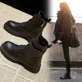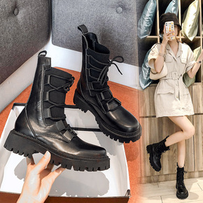 马丁靴女英伦风2021秋季新款靴子帅气机车靴女厚底...