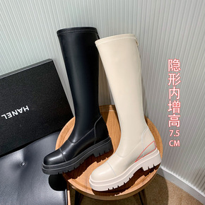 跨境外贸新款欧美秋冬女粗跟纯色增高高筒平跟侧拉链圆...