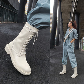 马丁靴女2021秋季新款杨mi同款切尔西高筒短筒厚...