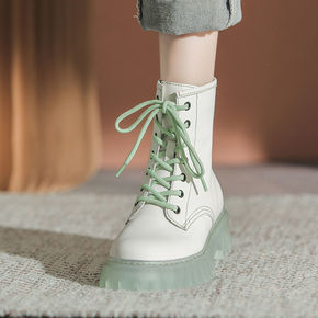手工鞋女鞋2021年新款绑带工装靴伞兵靴机车马丁靴...