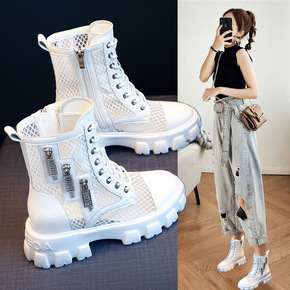 马丁靴夏季薄款女年新款百搭短靴透气网纱靴子女镂空网...