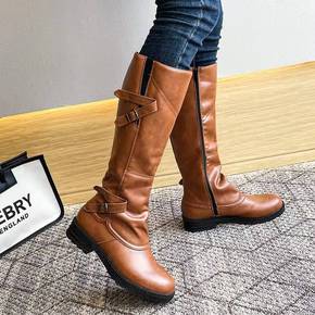 全棕色长靴女年新款胖妹妹显瘦高筒粗跟不过膝中筒骑士...