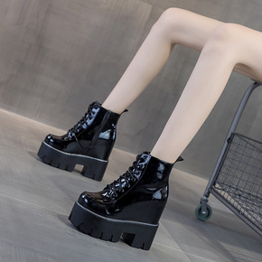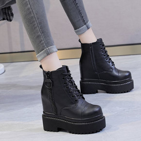 增高鞋初中学生ins潮黑色马丁靴女秋冬新款加绒英伦...