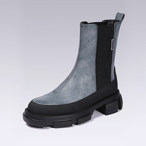 嘉力奴2021秋冬新款撞色烟筒靴时尚潮酷厚底圆头短...