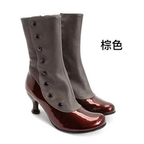 重磅秋冬新品高跟靴女民族光泽感刺绣复古异形跟手工中...