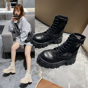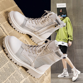 2022新款女鞋网纱镂空马丁靴夏季薄款透气法式百搭...