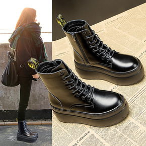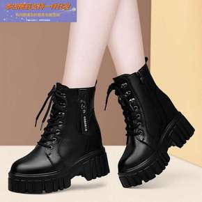 真软皮马丁靴2021新款春秋单靴厚底内增高靴子加绒...