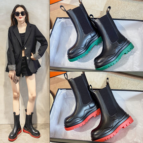 2021年新款厚底烟筒切尔西靴女英伦风黑色秋季单靴...