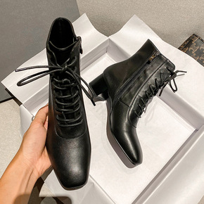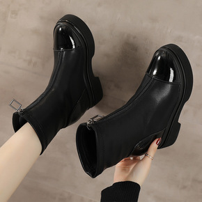 粗跟马丁靴女2021年秋冬季新款英伦风短靴后拉链方...