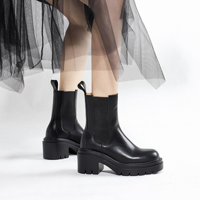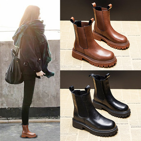 靴子女2021年新款秋冬季厚底短靴骑士靴切尔西靴休...