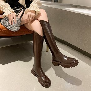 外贸款长筒女靴冬季新品时尚高跟粗跟40-43流苏铆...