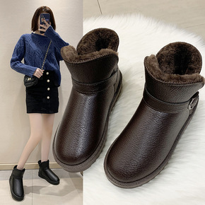雪地靴女2021冬季新款圆头套脚平底毛毛短靴加厚学...