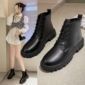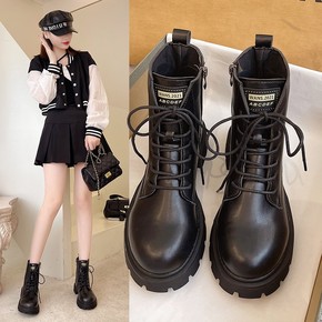 2021秋冬季新款马丁靴女英伦风机车短筒靴子女潮休...