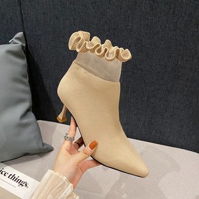 高跟马丁靴女2021秋冬季新款欧美细跟尖头单靴网红...