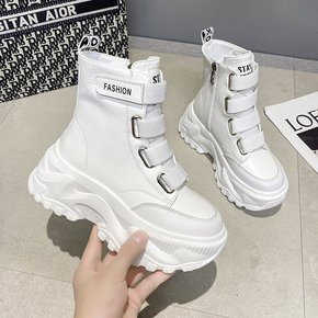 靴子女2021新款秋冬季英伦风休闲松糕厚底马丁靴后...