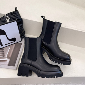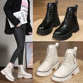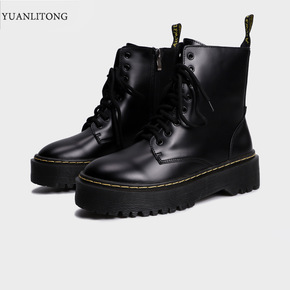 欧美wish新款厚底烟筒靴女跨境大码中跟马丁靴时装...