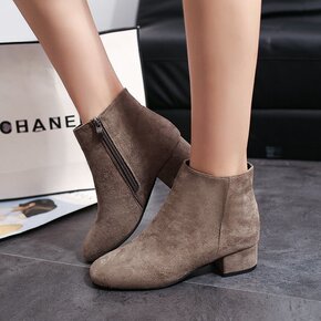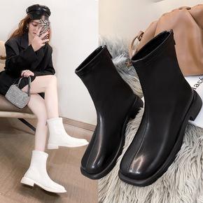 短靴女中跟粗跟方头马丁靴2021秋冬季新款欧美时尚...