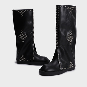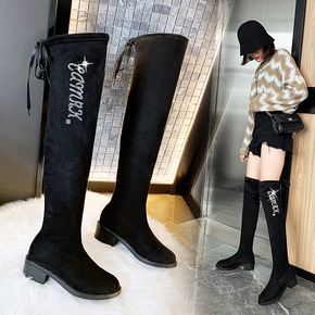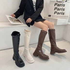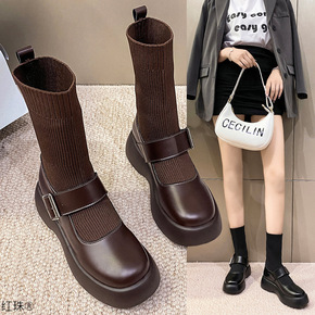 2021冬时尚小众裤管靴马丁骑士靴女高筒厚底瘦瘦长...