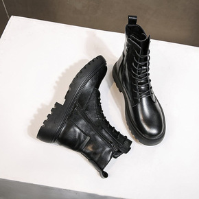 马丁靴女2021年秋冬季新款短靴女厚底增高休闲学生...