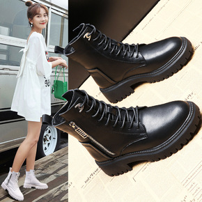 短筒马丁靴女2021秋冬新款韩版复古英伦风机车黑色...