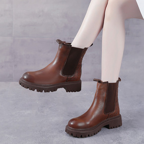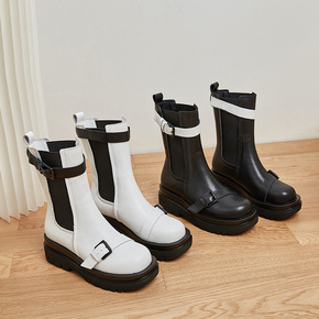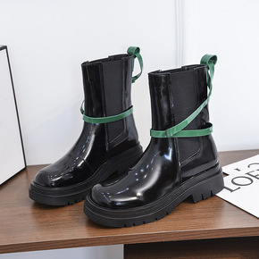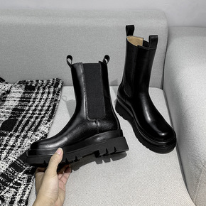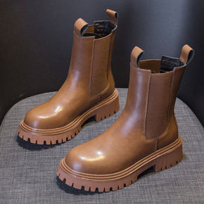 切尔西靴女春秋季新款圆头英伦风马丁厚底松紧带烟筒切...