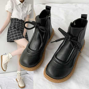 复古秋冬单靴2021年春秋季新款软皮马丁靴小短靴秋...
