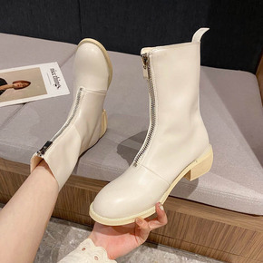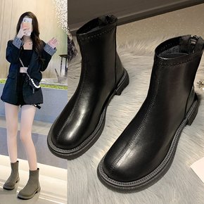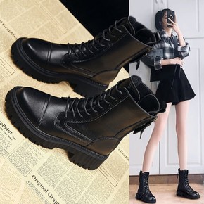 英伦风马丁靴女2021年秋冬季新款后拉链粗跟马丁靴...