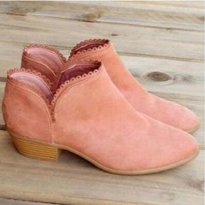 法式小短靴细跟尖头气质绒面羊皮秋冬加绒后拉链杏色瘦...