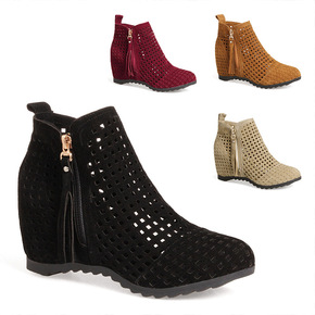 季镂空洞洞靴牛皮内增高磨砂皮短靴单靴短筒马丁靴大小...