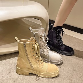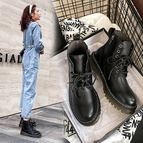 2021秋冬英伦复古时尚舒适短靴平底粗跟女鞋马丁靴...