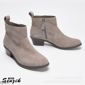 wish跨境大码短靴女2022新款秋冬英伦风粗跟中...