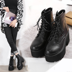 2021秋冬新款高跟鞋时尚马丁靴防水台粗跟韩版短靴...