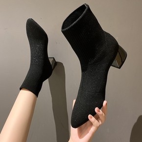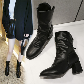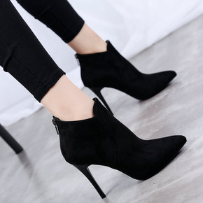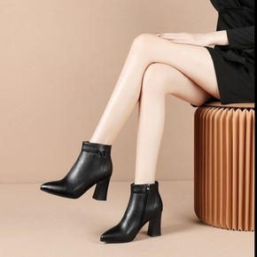 高跟鞋女秋冬2021新款性感短靴女细跟尖头马丁靴女...