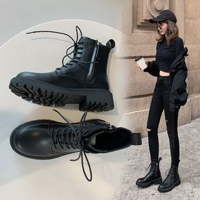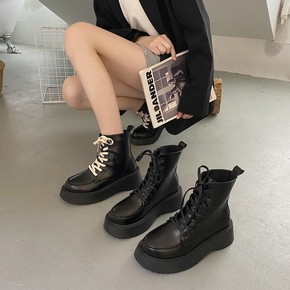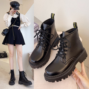 复古马丁靴女2021秋冬季新款厚底圆头网红英伦风系...