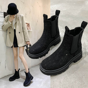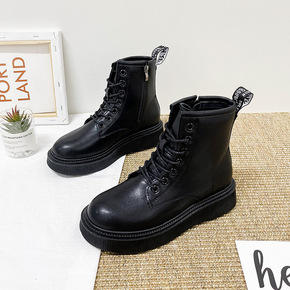2021秋冬新款切尔西靴英伦马丁靴女厚底低筒短靴潮...