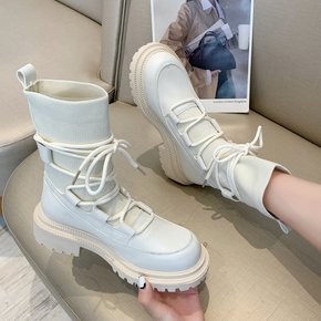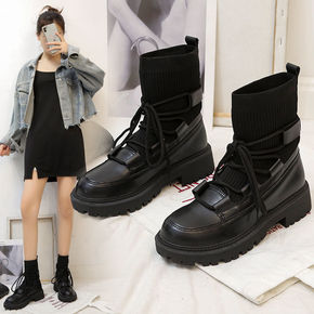 马丁靴女靴子2021新款厚底英伦风黑色短靴弹力连袜...
