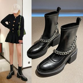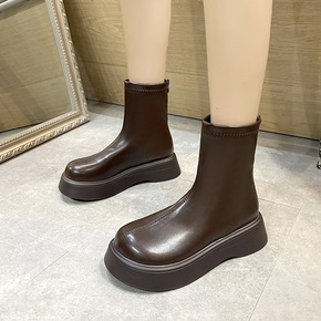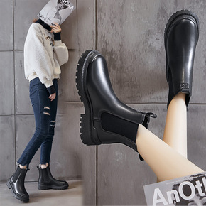 英伦风短靴女2021秋冬新款帅气切尔西靴厚底马丁靴...