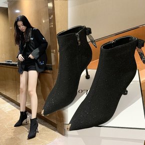 高跟马丁靴女2021秋冬季新款细跟流行气质尖头春秋...
