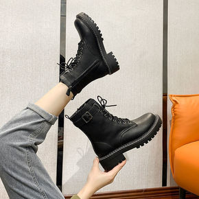 马丁靴女鞋子2021新款秋季英伦风瘦瘦秋冬季饼干底...