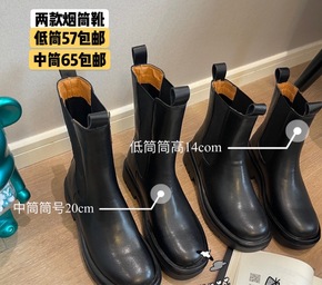 头层牛皮马丁靴女2021秋冬新款圆头松紧带英伦风休...
