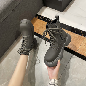 马丁靴女2021年新款增高短靴系带及踝靴复古大头鞋...