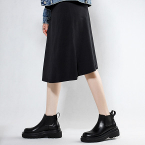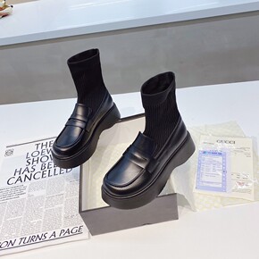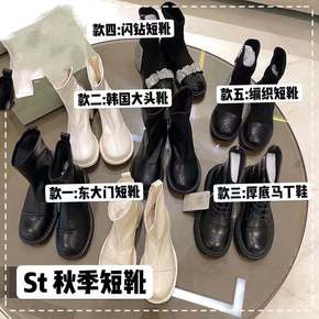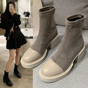 2021春秋厚底短靴真皮女靴连袜百搭马丁靴中跟弹力...