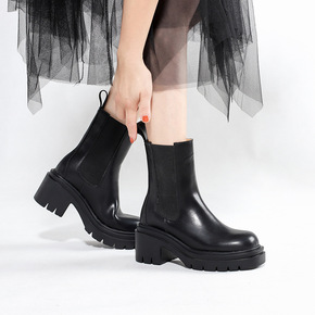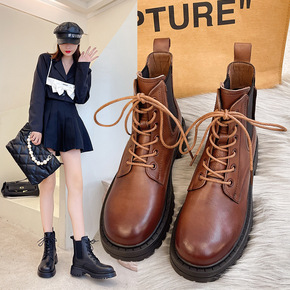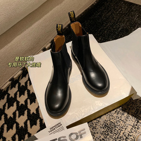 真皮马丁靴女2021秋季新款英伦风厚底机车靴切尔西...