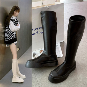 骑士靴2021新款秋冬单靴长筒靴女厚底粗跟百搭瘦瘦...