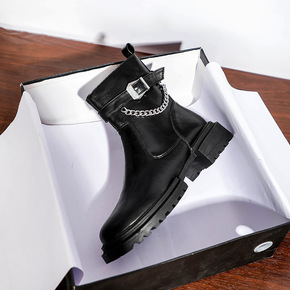 软皮马丁靴女靴2021新款春秋单靴骑士英伦风短靴厚...