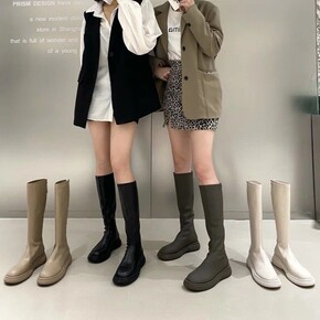 不过膝长筒靴女2021年春秋新款网红时尚百搭后拉链...