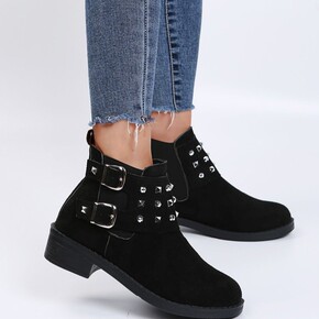 2021秋季新款欧美皮带扣中跟马丁靴外贸大码铆钉粗...