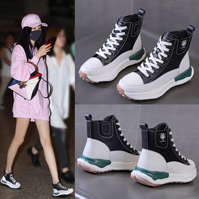 高帮鞋女2021秋冬季新款透气拼色百搭高帮帆布鞋女...